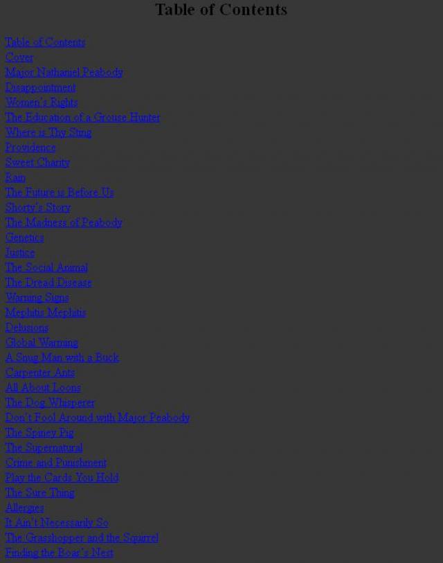 The journals of Major Peabody [electronic resource] : a portfolio of deceptions, improbable stories and commentaries about upland game birds, waterfowl, dogs and popular delusions / written by Galen Winter – 1st ed.