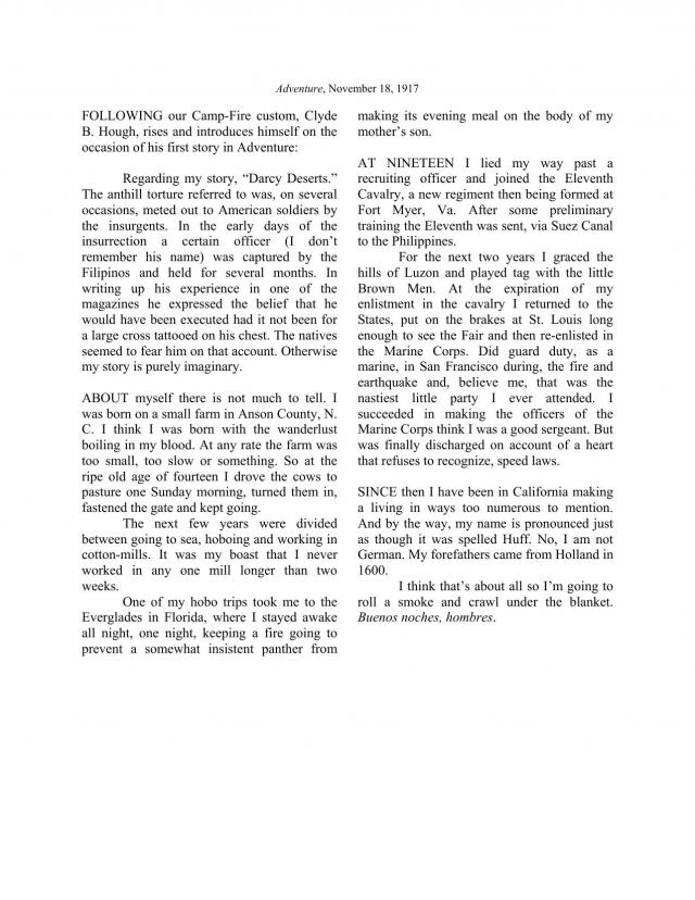 occasion of his first story in Adventure: